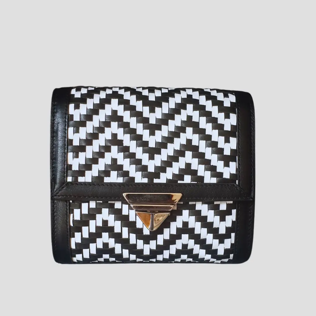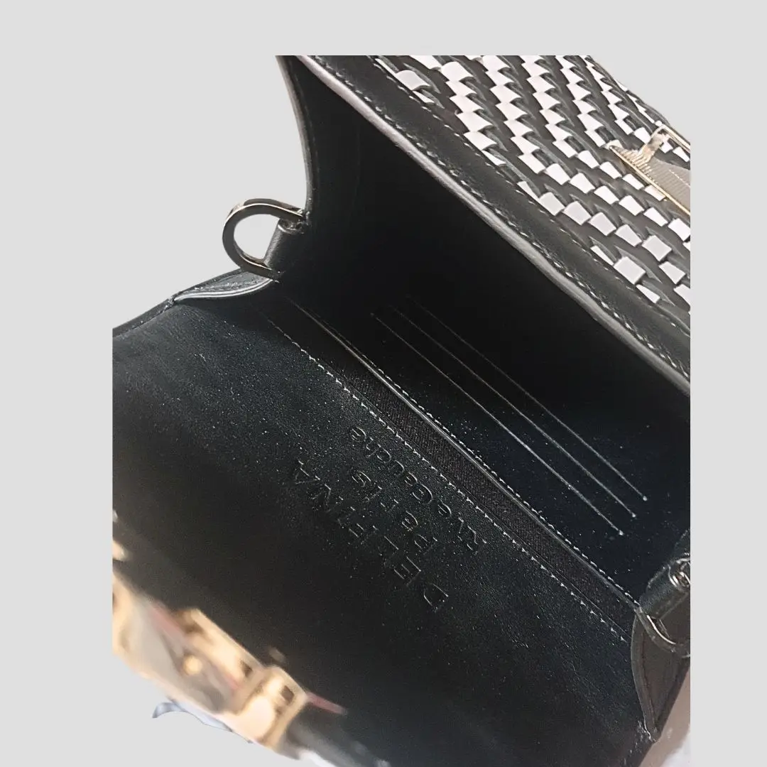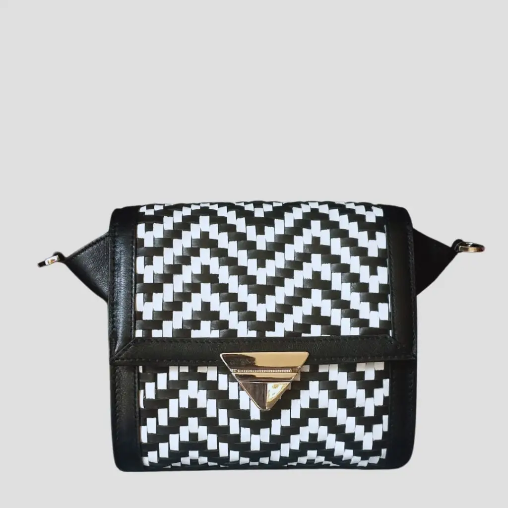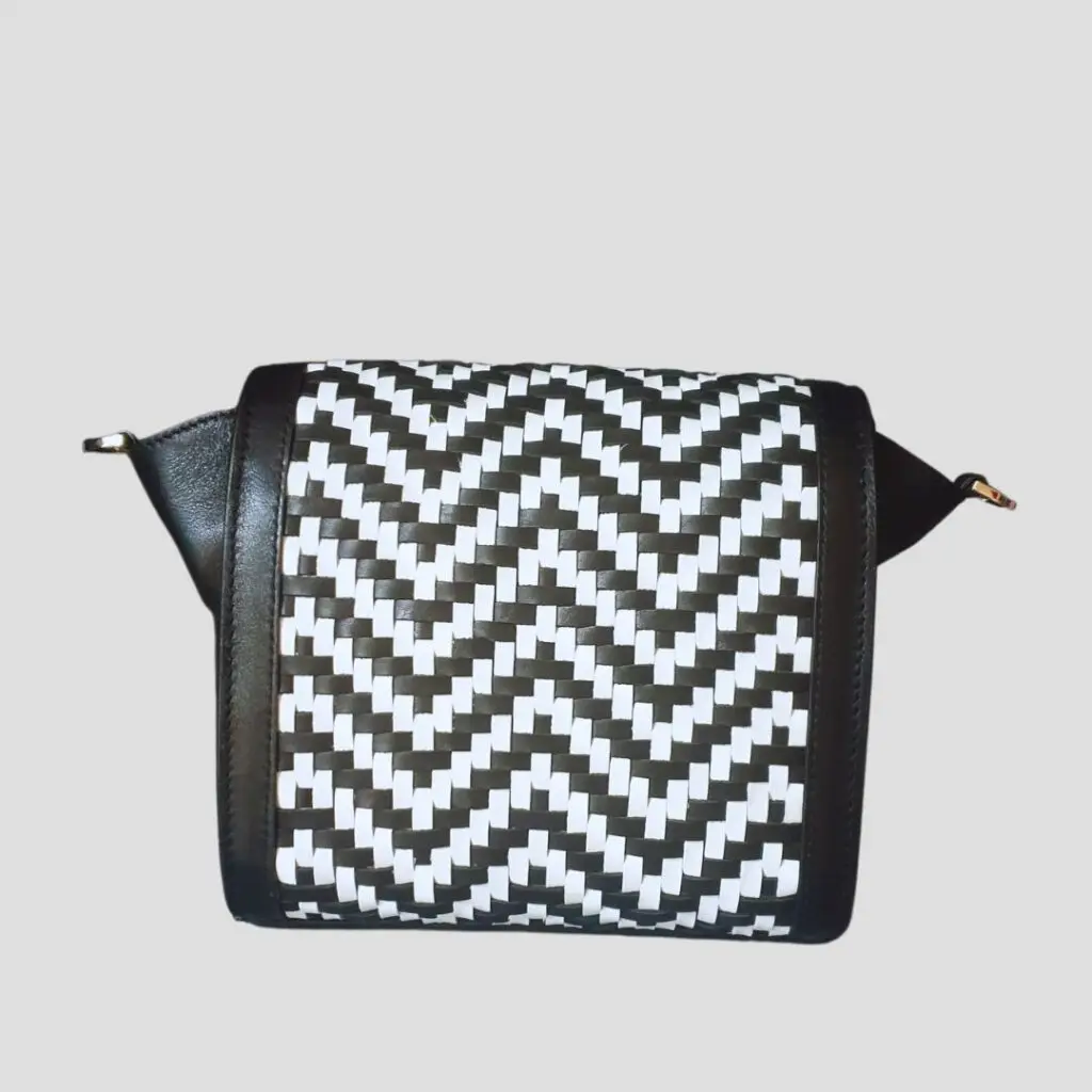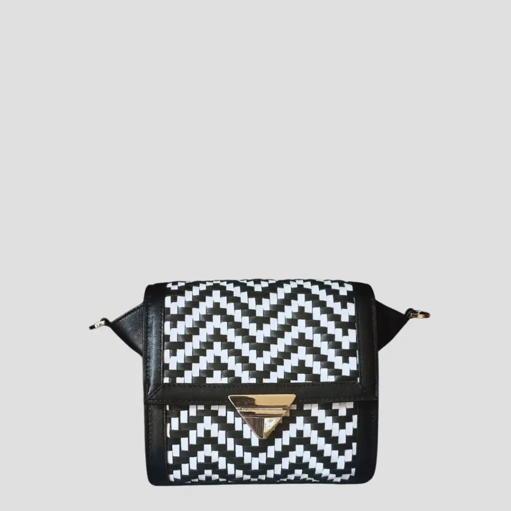 Mimi petit sac en cuir porté épaule en cuir tressé noir & blanc