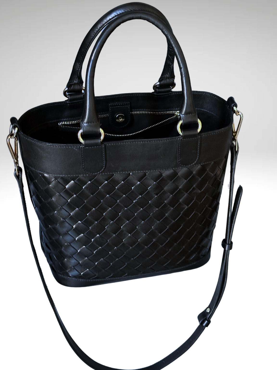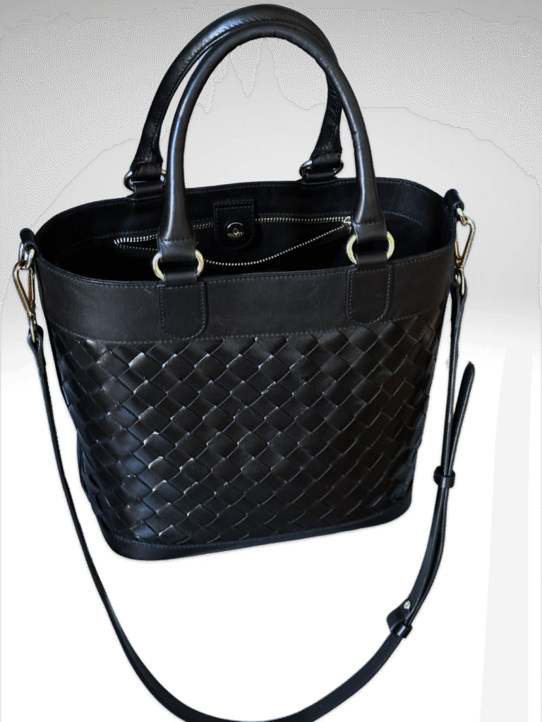En cuir tressé à l a main dans notre atelier et de couleur noir Il se porte à la main ou avec une bandoulière, Comme tous les sacs de Delfina Paris il se compose d’une grande poche intérieure se fermant avec une fermeture éclair.